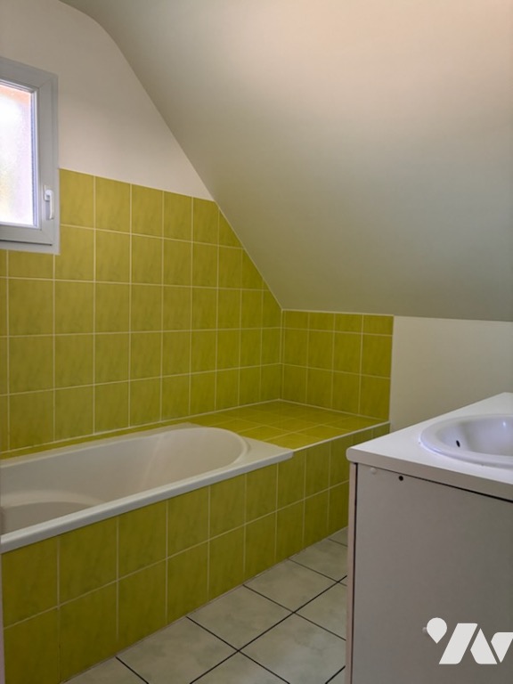 A l'étage : 2 chambres dont une avec placard, un bureau avec placard, salle de bains, wc.