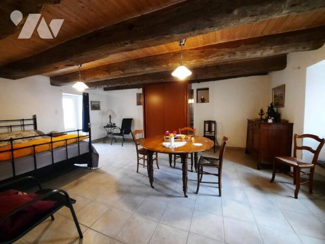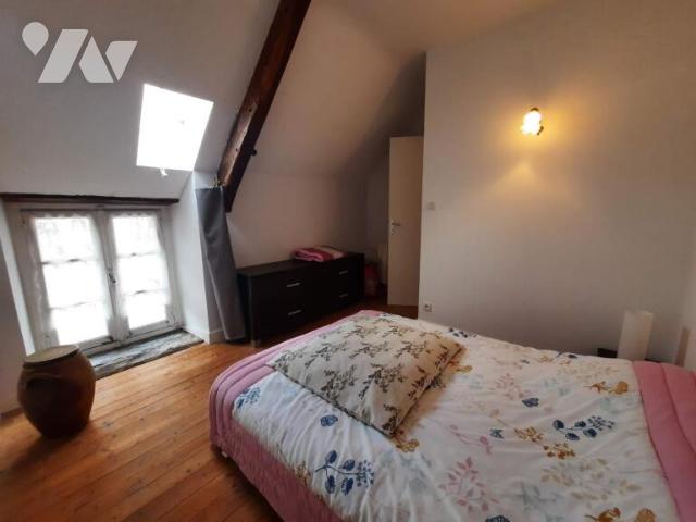 A l'étage : 2 chambres. Un grenier sur la partie séjour accessible par échelle escamotable.